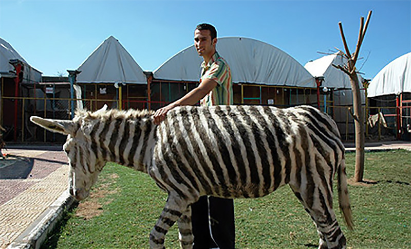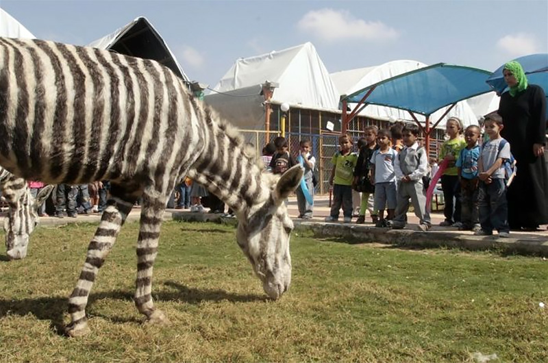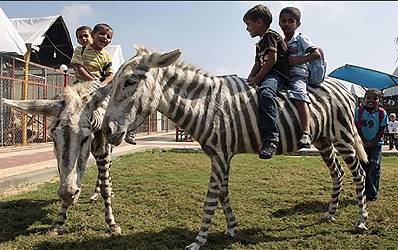 A história baseia-se em factos reais, que têm como protagonista Mahmoud Barghout, proprietário do “Happy Land Zoo” no território palestiniano de Gaza, cujos animais morreram depois de bombardeamentos que isolaram aquele lugar, impedindo os seus tratadores de os alimentarem. Impossibilitado de os substituir, devido ao cerco israelita, Barghout teve a ideia de pintar dois burros como se fossem zebras, para grande júbilo das crianças, que acreditam estar perante verdadeiros animais das savanas africanas. No entanto, ao contrário das zebras, os burros podem ficar fora de espaços fechados e serem montados pelas crianças.