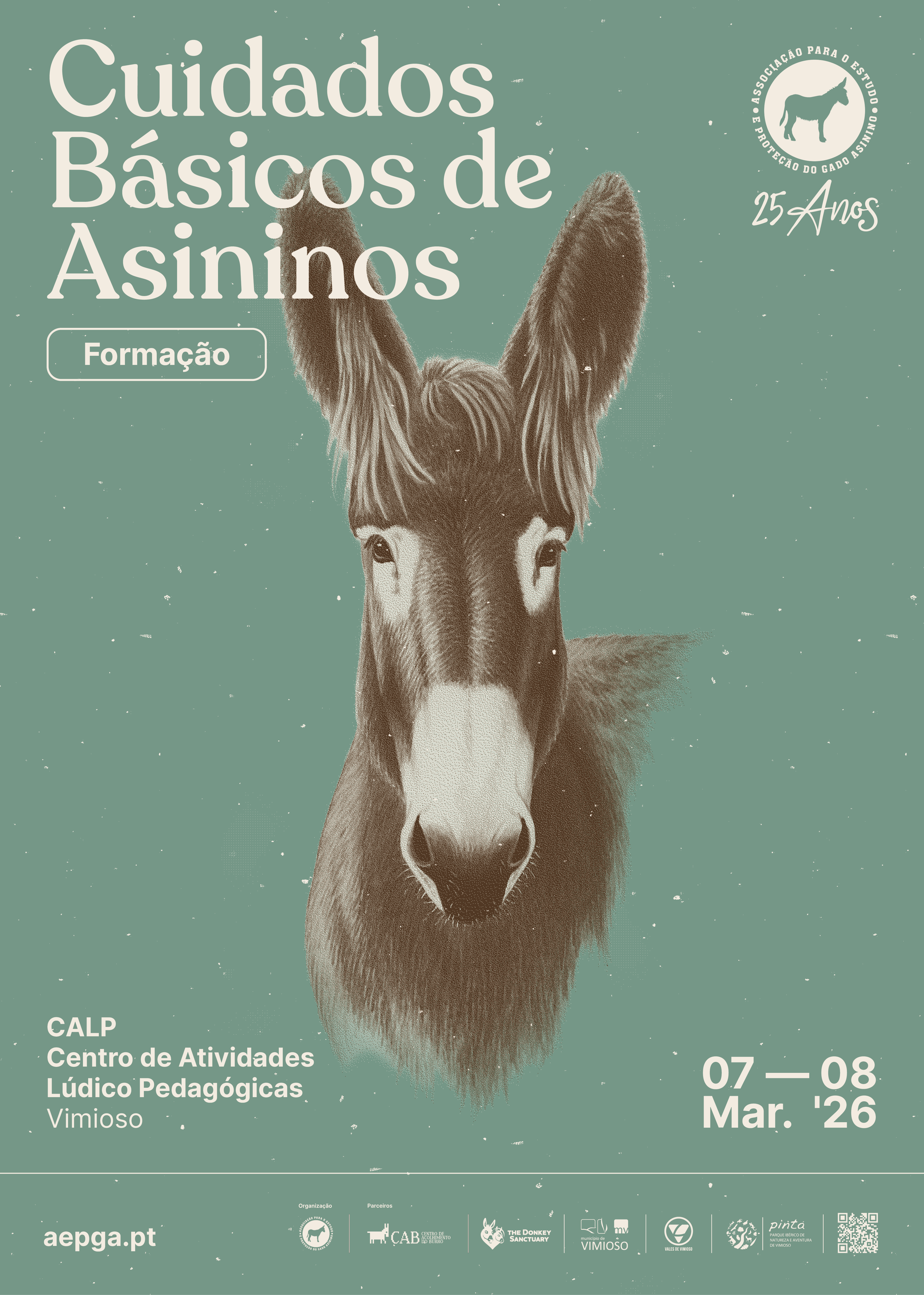 A AEPGA – Associação para o Estudo e Proteção do Gado Asinino convida todos os tutores de burros, criadores e pessoas interessadas em aprender mais sobre esta espécie a participar no Workshop de Cuidados Básicos em Asininos, que se realizará nos dias 7 e 8 no mês Março de 2026 (ESGOTADO), no CALP – Centro de Atividades Lúdico-Pedagógicas do Burro de Miranda, em Vimioso.
