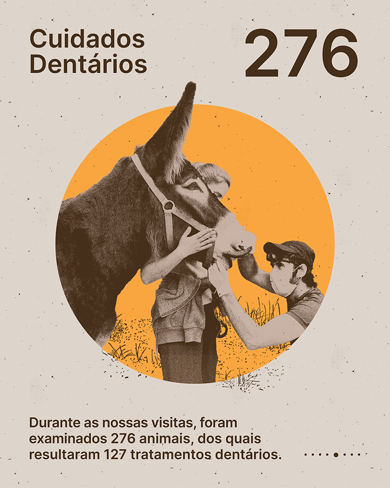 O impacto direto na saúde física dos animais foi visível através da realização de 715 aparos de cascos em 410 animais, e 276 exames dentários, dos quais resultaram tratamentos cruciais para o bem-estar diário dos burros e para a prevenção de uma série de patologias decorrentes. Por intermédio da AEPGA, o Centro de Acolhimento do Burro abriu as portas a 5 novos animais, que foram acolhidos após resgate, e que aqui encontrarão um novo lar seguro e com assistência garantida. Estas campanhas permitem a abordagem a casos urgentes nas proximidades, e atuam, sobretudo, na prevenção e na educação dos criadores, assegurando que as boas práticas de maneio e manutenção da saúde dos burros se tornem a norma e não a exceção.