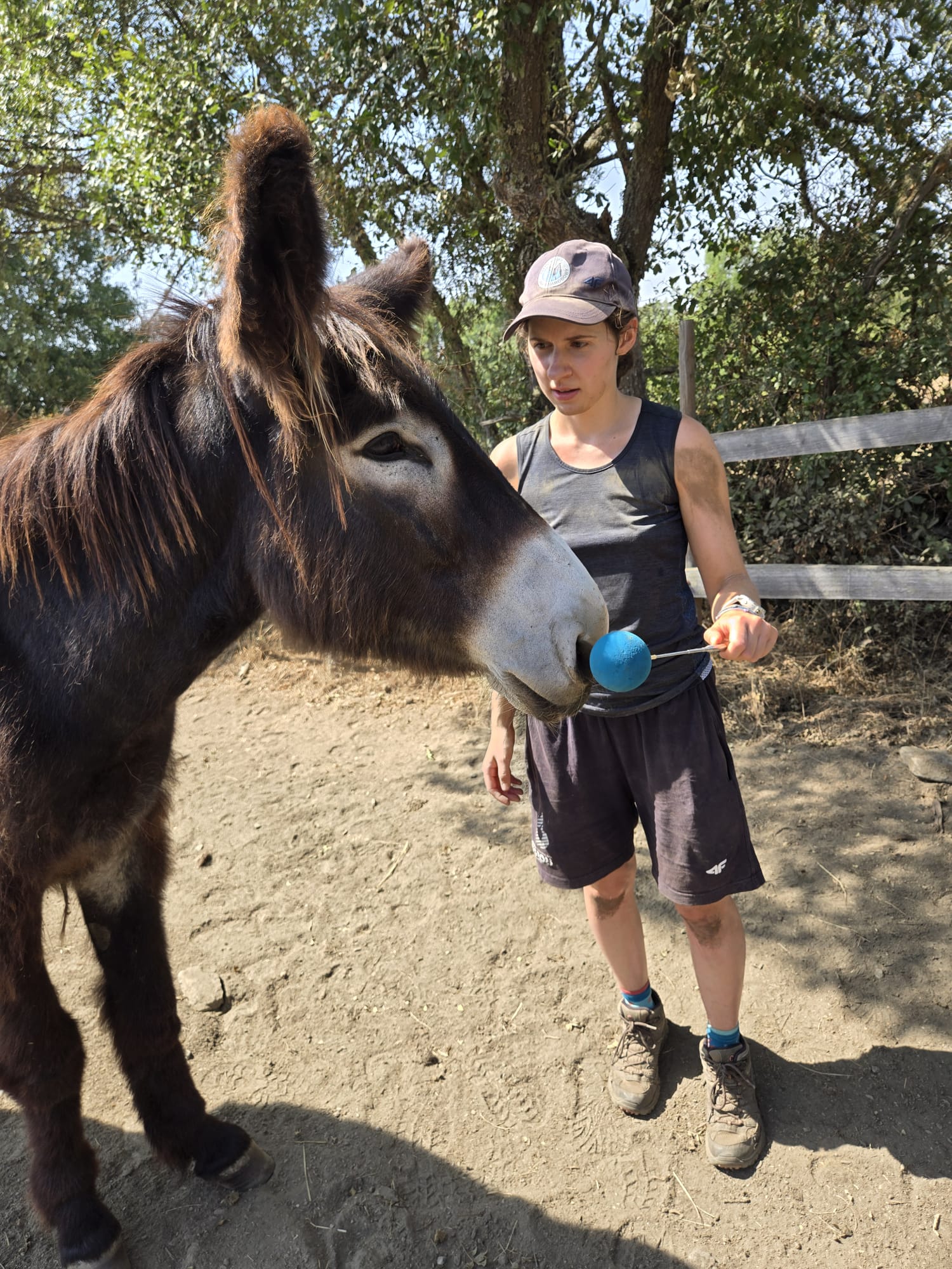 Cuidando dos burros graças ao Corpo Europeu de Solidariedade