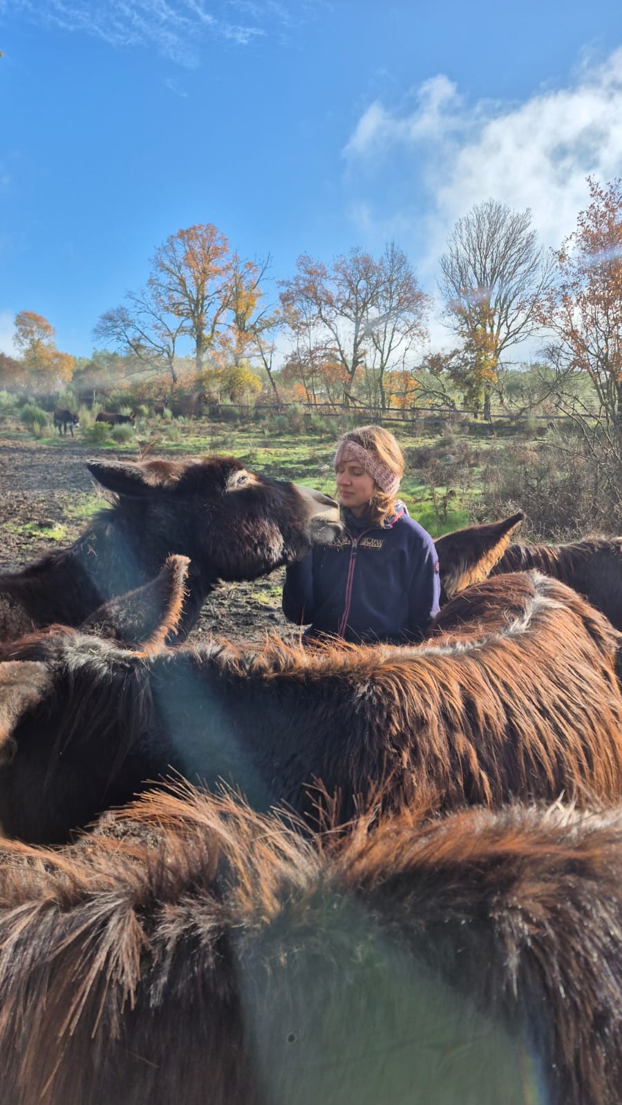 "É difícil descrever esta experiência em poucas palavras. Foi extraordinário, desafiante, foi um ano encantador. Participei em eventos que nunca teria imaginado. Fiz um monte de coisas pela primeira vez. Fiquei apaixonada de novo pela natureza e mais incentivada a protegê-la. Fico grata aos meus colaboradores mais próximos, os burros, que me mostraram a cada dia razões para sentir felicidade. Aproveitei cada pisada, pontapé, mordida e cada festinha e beijinho. Sinto-me sortuda por ter conhecido tantas pessoas maravilhosas que me receberam de braços e corações abertos, e me apoiaram ao longo do caminho. Obrigada por terem partilhado comigo os seus conhecimentos, desde como reconhecer o animal que anda com os pés na cabeça (o piolho) no pêlo dos burros até como ajudar um burranco medroso a ganhar coragem. Essas interações com todas as pessoas permitiram-me aprender e descobrir várias nuances relacionadas ao bem-estar animal, à vida rural, ao sentimento de pertença. Levaram-me a conhecer melhor, também, a mim própria.