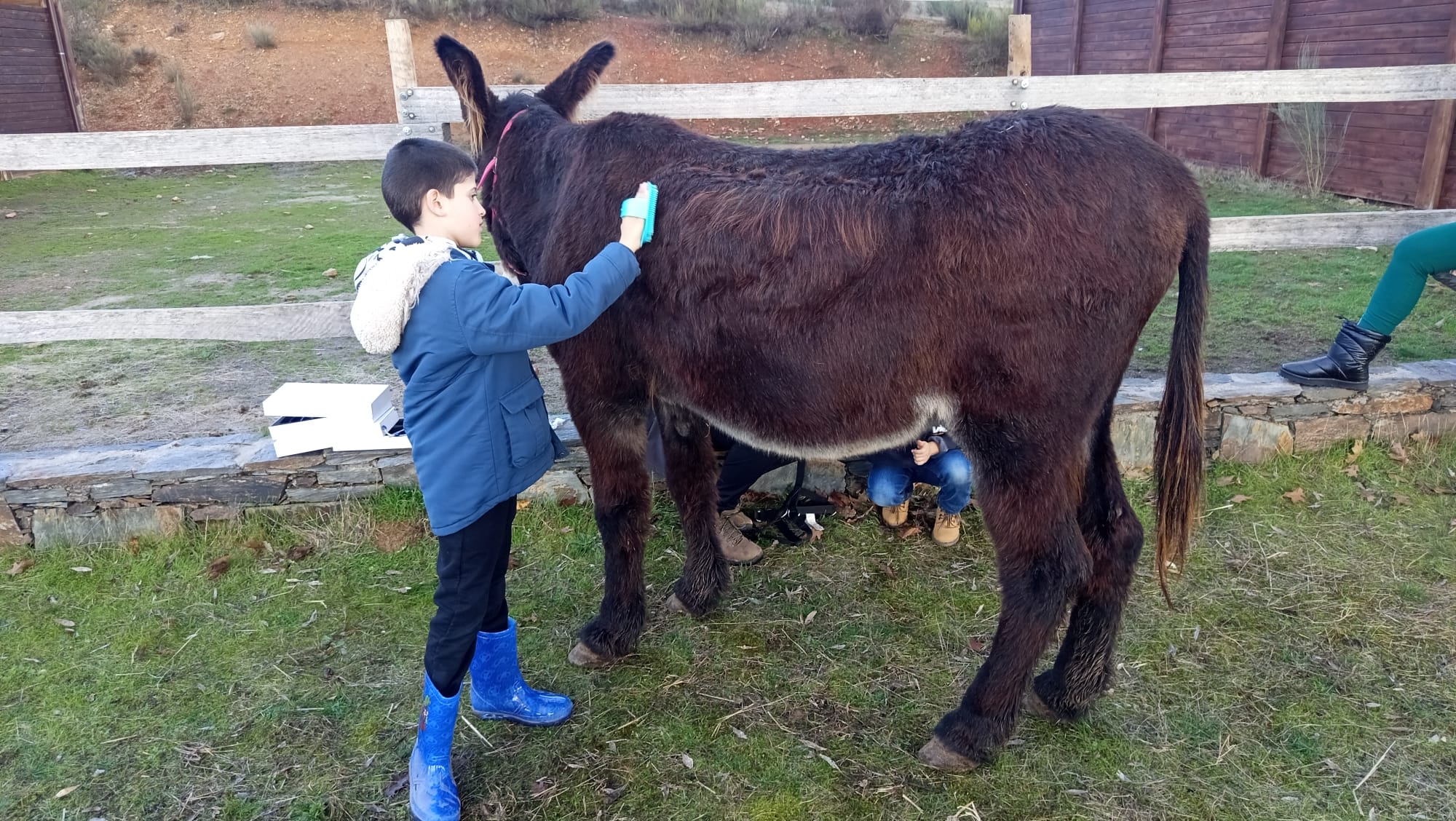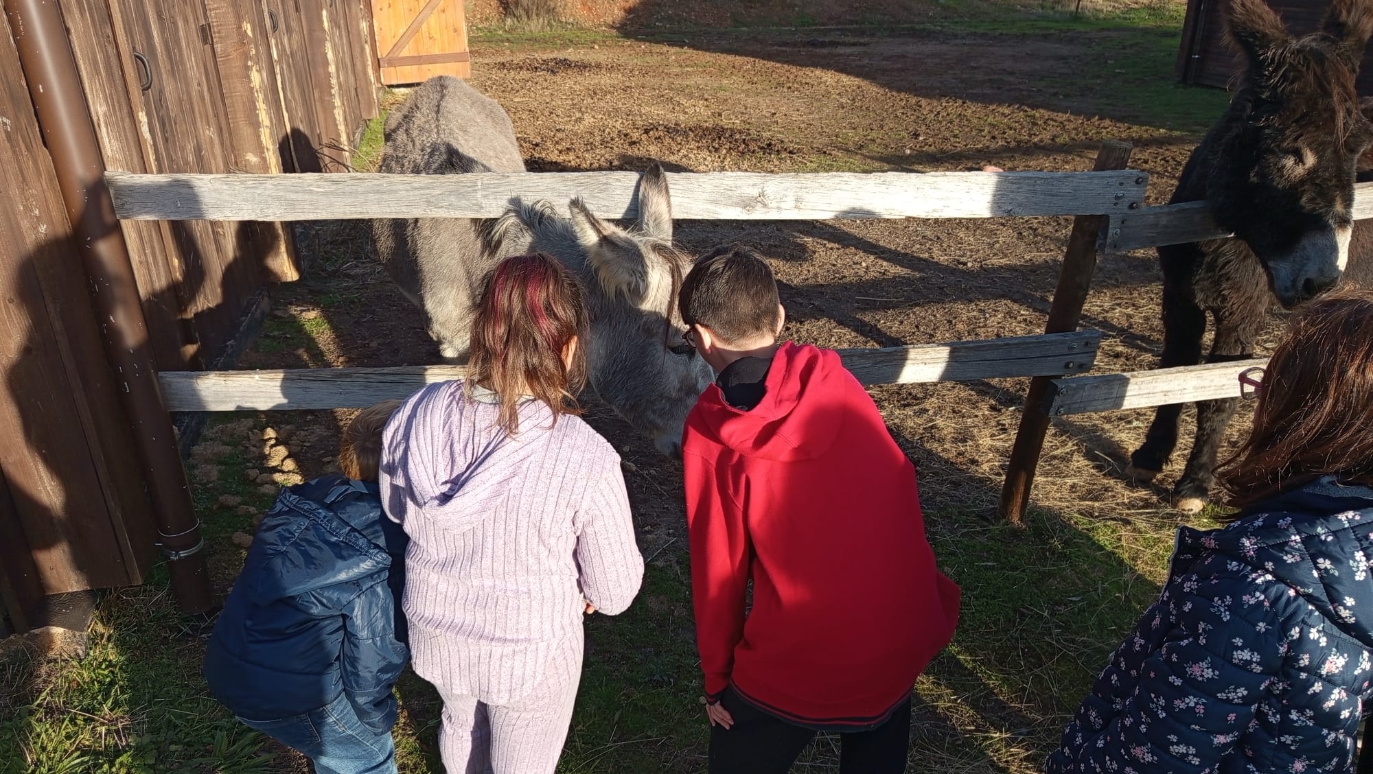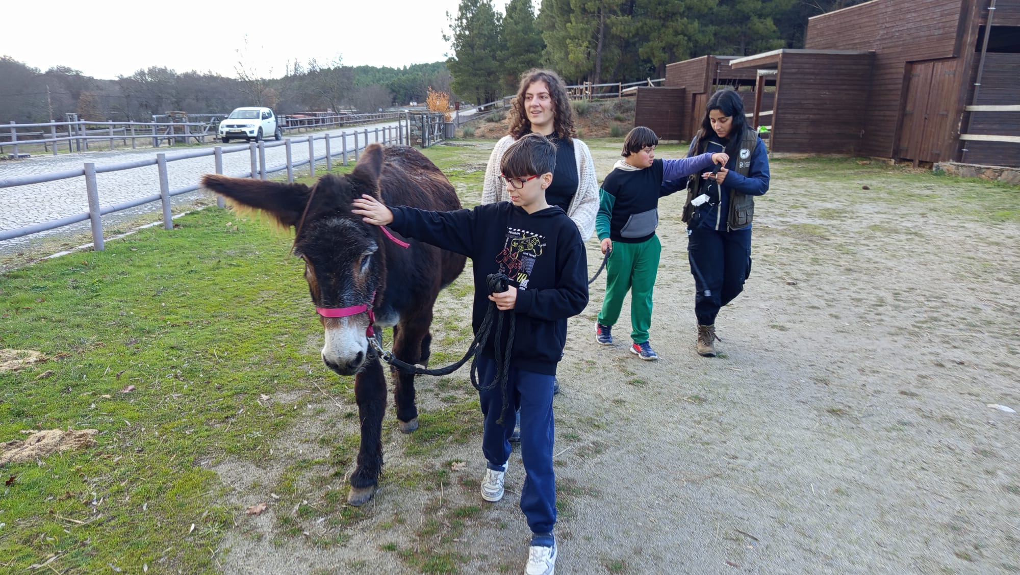 As duas primeiras sessões previstas já decorreram no Centro de Atividades Lúdico-Pedagógicas do Burro de Miranda, situado no Parque Ibérico de Natureza e Aventura de Vimioso, em São Joanico. As meninas e meninos descobriram os diferentes espaços da "casa dos burros", os objetos necessários para cuidar deles e as suas rotinas diárias. Os burros Garbanzo e Romão acompanharam estes encontros de perto, caminharam guiados pelas crianças, e receberam muitas escovadelas e carinhos. Em época natalícia, houve ainda uma caça aos enfeites, a decoração de uma árvore e muitos desenhos para os amigos burros! Agradecemos ao Agrupamento de Escolas de Vimioso e à Equipa Multidisciplinar de Apoio à Educação Inclusiva por permitirem estes encontros, e às técnicas e técnicos que sempre acompanham o grupo com entusiasmo.