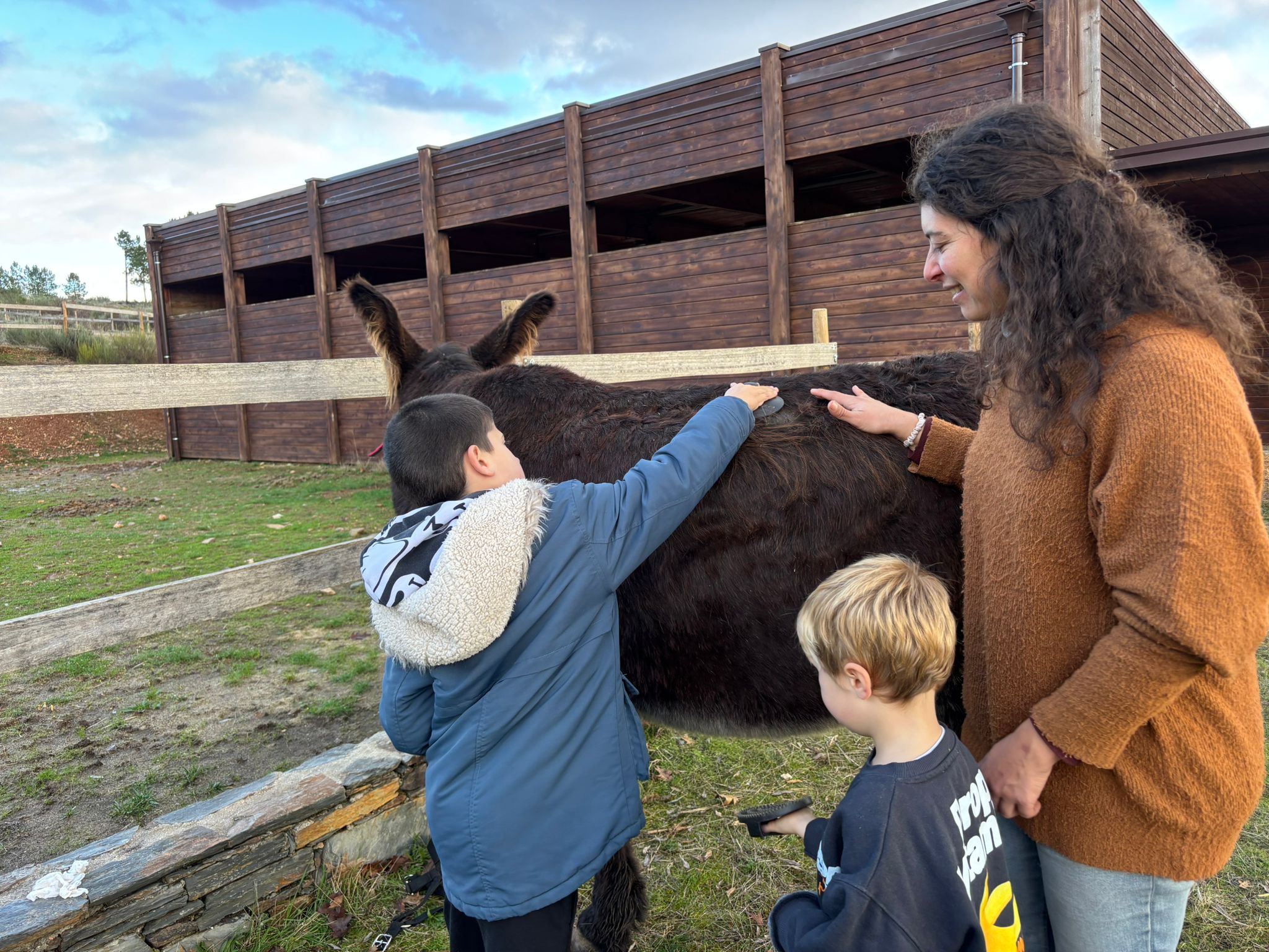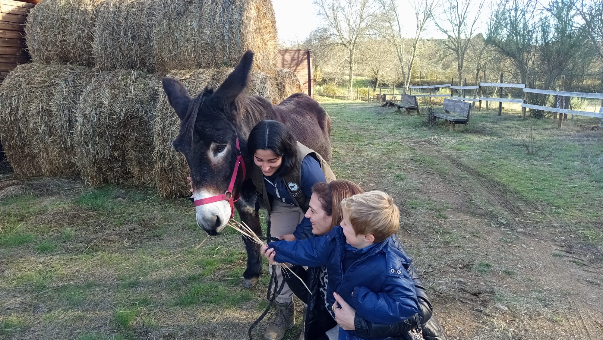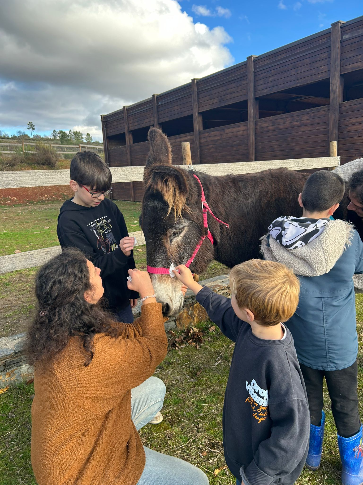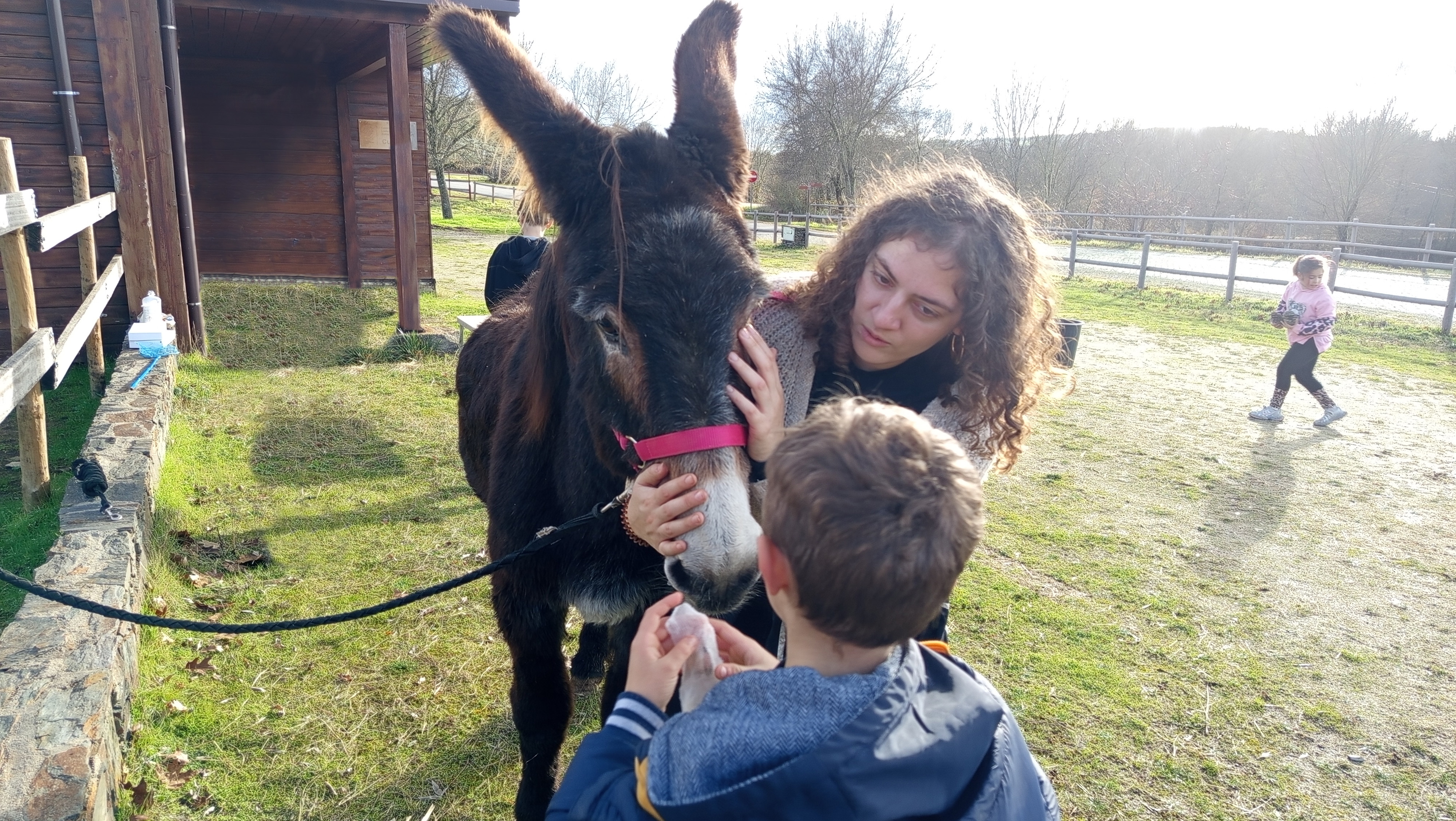 As duas primeiras sessões previstas já decorreram no Centro de Atividades Lúdico-Pedagógicas do Burro de Miranda, situado no Parque Ibérico de Natureza e Aventura de Vimioso, em São Joanico. As meninas e meninos descobriram os diferentes espaços da "casa dos burros", os objetos necessários para cuidar deles e as suas rotinas diárias. Os burros Garbanzo e Romão acompanharam estes encontros de perto, caminharam guiados pelas crianças, e receberam muitas escovadelas e carinhos. Em época natalícia, houve ainda uma caça aos enfeites, a decoração de uma árvore e muitos desenhos para os amigos burros! Agradecemos ao Agrupamento de Escolas de Vimioso e à Equipa Multidisciplinar de Apoio à Educação Inclusiva por permitirem estes encontros, e às técnicas e técnicos que sempre acompanham o grupo com entusiasmo.