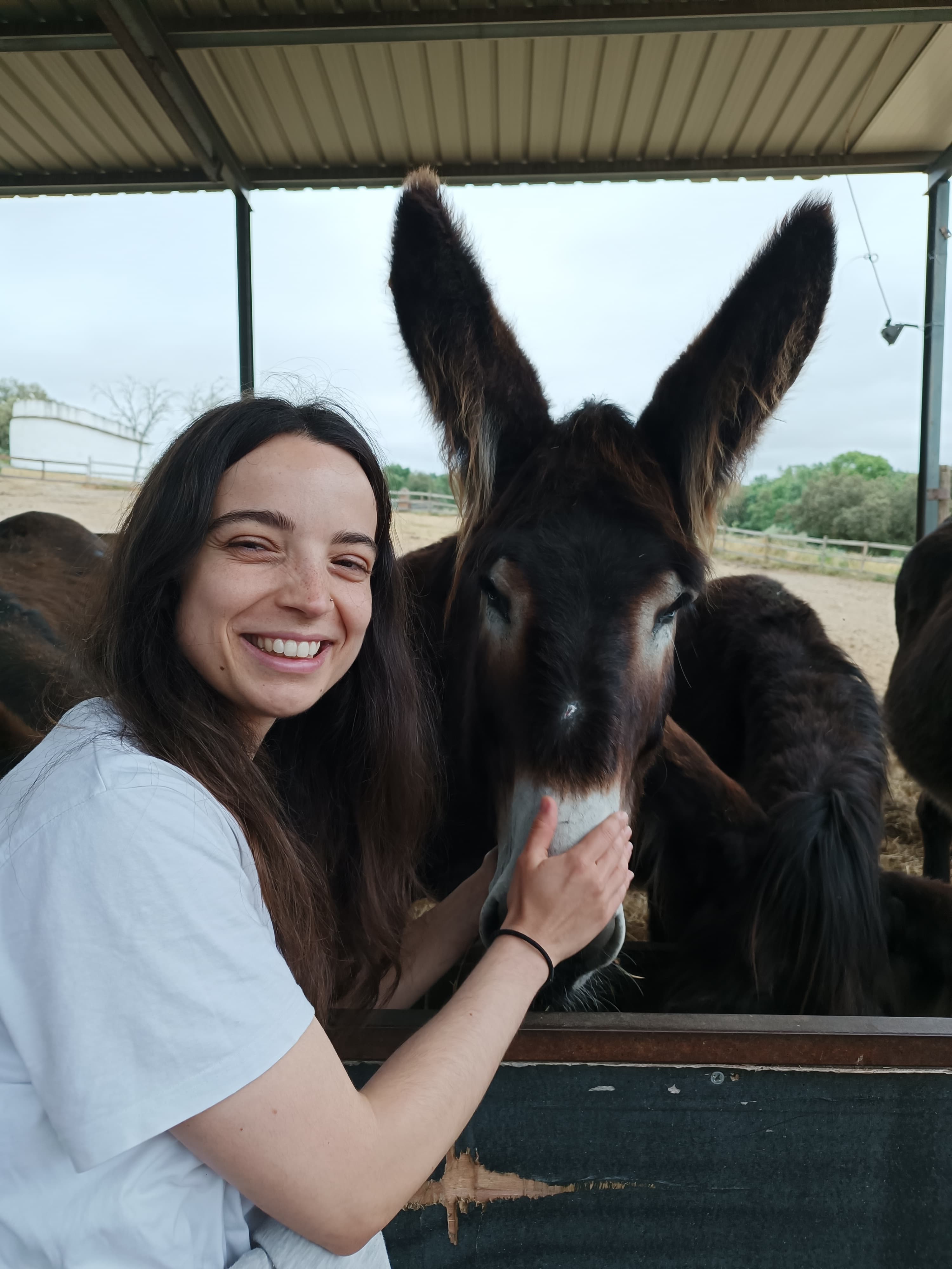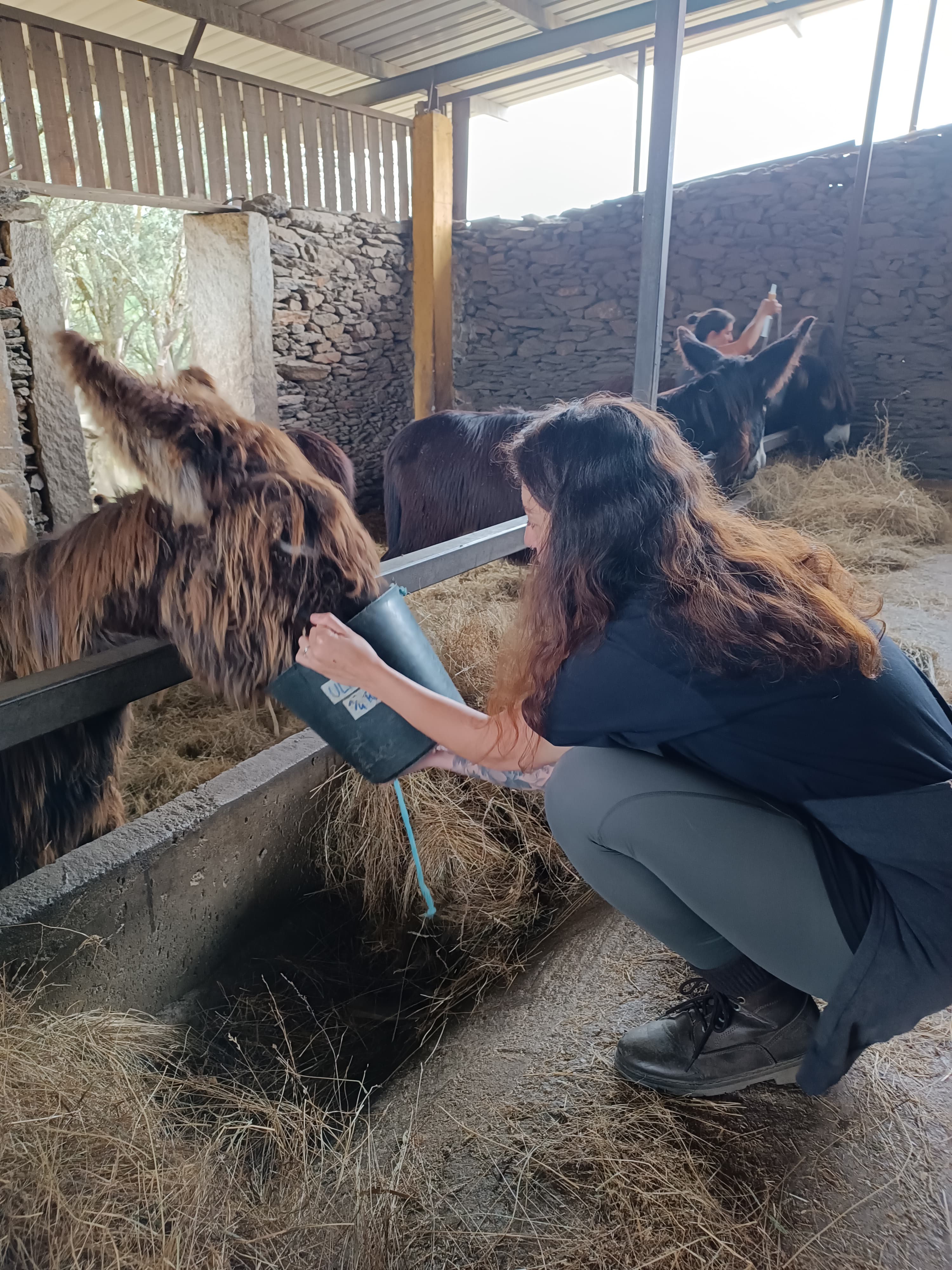 “A experiência de voluntariado da AEPGA foi de longe a melhor experiência deste ano até agora! Foi uma pausa muito bem-vinda da vida acelerada da cidade e uma oportunidade de aprendizagem e convívio incrível. As minhas expectativas eram altas: estava ansiosa por trabalhar em conjunto com a AEPGA e por ter a oportunidade de interagir bem de perto com os burrinhos. Neste aspeto, as minhas expectativas foram mais do que correspondidas. A grande surpresa e o que na verdade elevou bastante esta experiência foram as pessoas: na minha opinião não podíamos ter sido mais bem recebidas e acarinhadas do que fomos, desde o entusiasmo em mostrar-nos o trabalho que desenvolvem diariamente a servirem de guias turísticos excelentes. A AEPGA são as pessoas que lá trabalham e que com ela colaboram. Espero ter a oportunidade de voltar aos vários centros - em particular à Regada para rever o Tó - e dar de comer a todos os burrinhos, e ao Centro de Acolhimento do Burro que constituiu o meu dia favorito deste voluntariado com as burrinhas minis e os velhinhos - e de poder trabalhar junto da AEPGA. Obrigada pela grande disponibilidade, pelo cuidado e por esta oportunidade incrível. Até à próxima!”